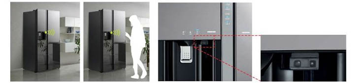 Tủ lạnh Hitachi inverter SF48EMV SH có khả năng cảm nhận được sự hiện diện của con người trong phạm vi gần thông qua cảm biến nhiệt ECO. Khi cảm nhận được có người, tủ lạnh sẽ tự động hiển thị bảng chỉ dẫn để người dùng có thể dễ dàng sử dụng. Và bản chỉ dẫn này sẽ tự ẩn đi khi không có người xung quanh.