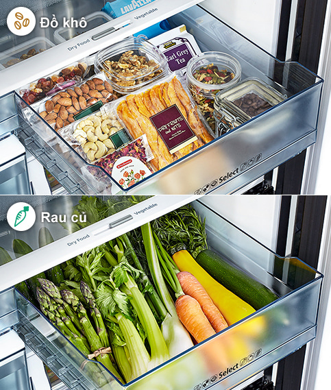 | Ngăn mát | Ngăn tùy chỉnh (Đồ khô⇔Rau quả) |