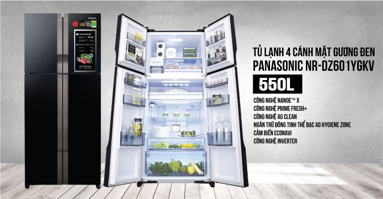 Tủ lạnh Panasonic NR-DZ601YGKV được ra mắt vào tháng 11 năm 2021 với tính năng nổi bật là công nghệ Nanoe X có tác dụng vô hiệu hóa vi khuẩn đến 99.99% vi khuẩn. NR-DZ601YGKV có dung tích 550L cho không gian sử dụng lớn. Để hiểu hơn về sản phầm điện máy Ánh Chinh sẽ mô tả kỹ hơn về những tính năng nổi bật như: