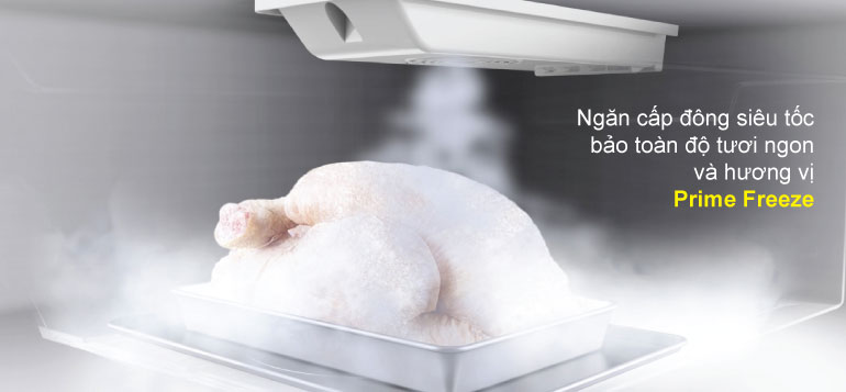 Với ngăn Prime Freeze thế hệ mới cấp đông siêu tốc, nhanh hơn gấp 5 lần, ngăn chặn hiệu quả sự phá hủy của tế bào, giúp hạn chế biến chất, chảy nước sau khi rã đông, giữ thực phẩm luôn ở trạng thái thơm ngon nhất.