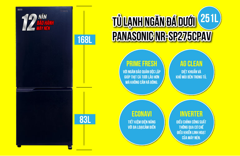 Tủ lạnh ngăn đá dưới Panasonic Inverter NR-SP275CPAV không chỉ là một thiết bị gia dụng mà còn là điểm nhấn tinh tế cho căn bếp của bạn. Với nhiều tính năng ưu việt và thiết kế hiện đại, đây chắc chắn là lựa chọn hoàn hảo cho gia đình bạn.
