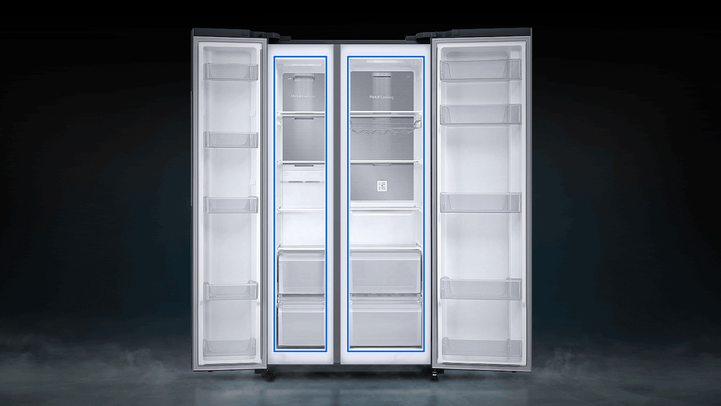 Với tủ lạnh lớn việc giữ nhiệt độ đều khắp rất quan trọng để giữ thực phẩm tươi lâu mà không đóng băng cục bộ. Công nghệ All Around Cooling giúp kiểm soát thay đổi nhiệt độ; cùng hệ thống họng gió riêng cho từng khay tạo luồng gió đảo chiều, giữ nhiệt độ đồng đều khắp các khu vực.