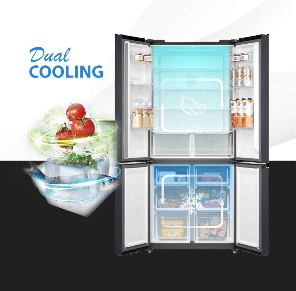 Dual Cooling điều chỉnh nhiệt độ độc lập cho ngăn mát và ngăn đông giúp cho nhiệt độ luôn ổn định và đồng đều, không gây lẫn mùi giữa các thức ăn với nhau cũng như luôn duy trì độ ẩm cao.