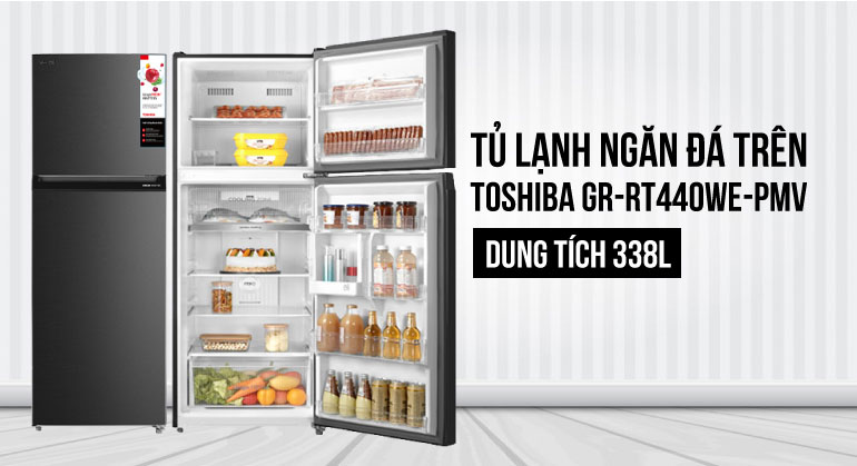 Tủ lạnh Toshiba GR-RT440WE-PMV được thiết kế ngăn đá trên truyền thống, bề mặt có khả năng chống bám vân tay nên bạn có thể thoải mái mở cánh cửa tủ mà không lo bị bám bẩn. Với dung tích 338L thì chiếc tủ lạnh Toshiba này sẽ phù hợp hơn cho gia đình có từ 3-4 thành viên.