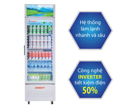 Tủ mát Sanaky VH-308K3L sử dụng để chứa đồ trong siêu thị như nước ngọt, sữa với nhiệt độ khoảng 0°C ~ 10°C, được thiết kế 1 cánh trong suốt mở ra có thể nhìn thấy đồ bên trong. Sanaky VH-308K3L sử dụng công nghệ Inverter siêu tiết kiệm điện lên đến 50% điện năng tiêu thụ giúp giảm chi phí tiền điện một cách đáng kể
