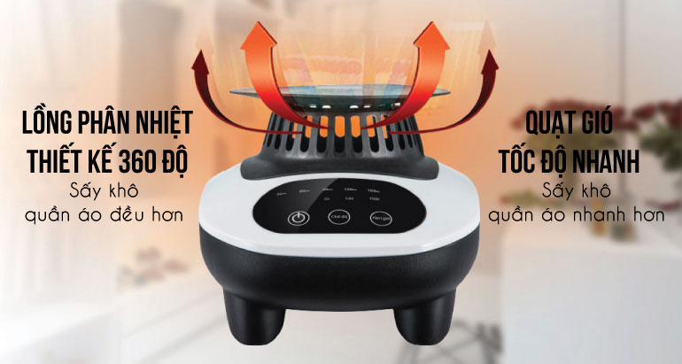 Khí nóng tỏa nhiệt đều quanh tủ với lồng phân nhiệt thiết kế 360 độ kết hợp với quạt gió tốc độ nhanh giúp quần áo được sấy khô và đều hơn, bạn có thể sấy khô 15 kg quần áo trong thời gian từ 1 đến 3 tiếng giúp tiết kiệm thời gian