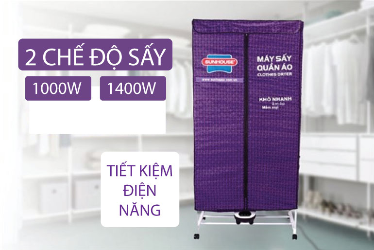 Tủ có 2 chế độ sấy 1000 và 1400W để bạn lựa chọn phù hợp với nhu cầu sử dụng giúp tiết kiệm điện năng tiêu thụ