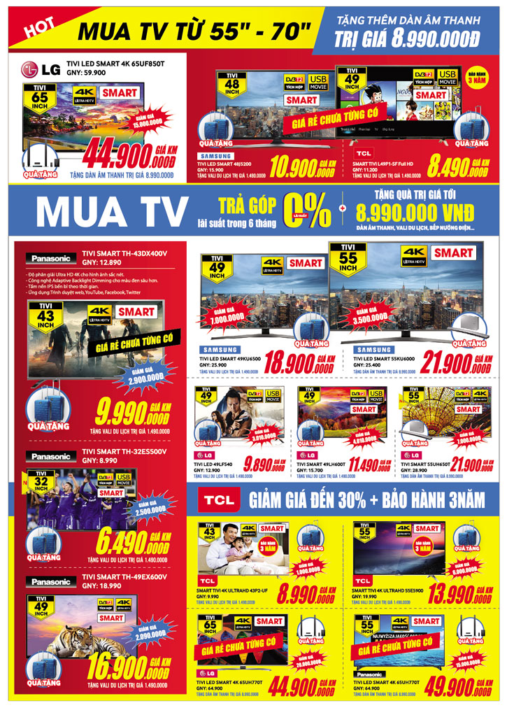 + Tivi TCL giảm giá đến 30% + Bào hành 3 năm chính hãng