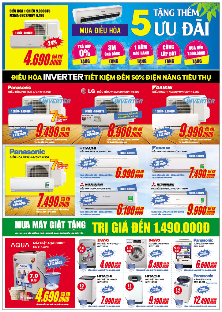 + Tặng thêm 5 ưu đãi khi mua Điều hòa